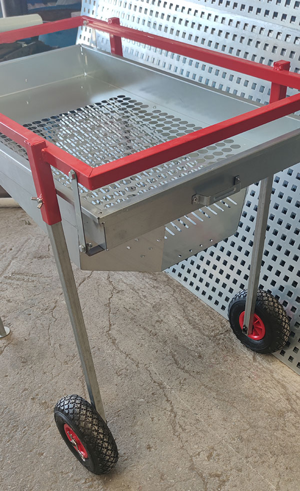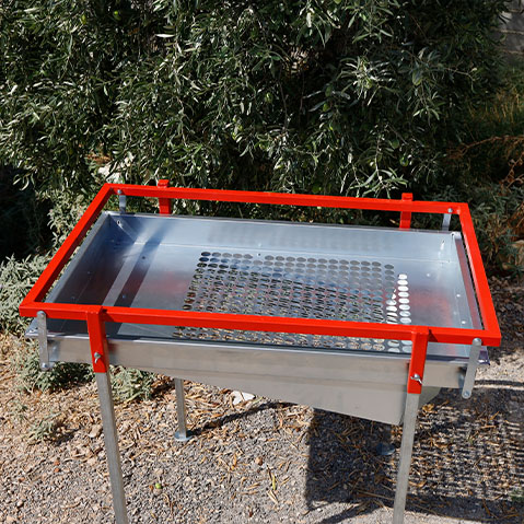 Κινούμενο κόσκινο ελιάς και ξηρών καρπών με στρογγυλές θυρίδες στη σκάφη και παραλληλόγραμμες στη λεκάνη συλλογής καρπού.