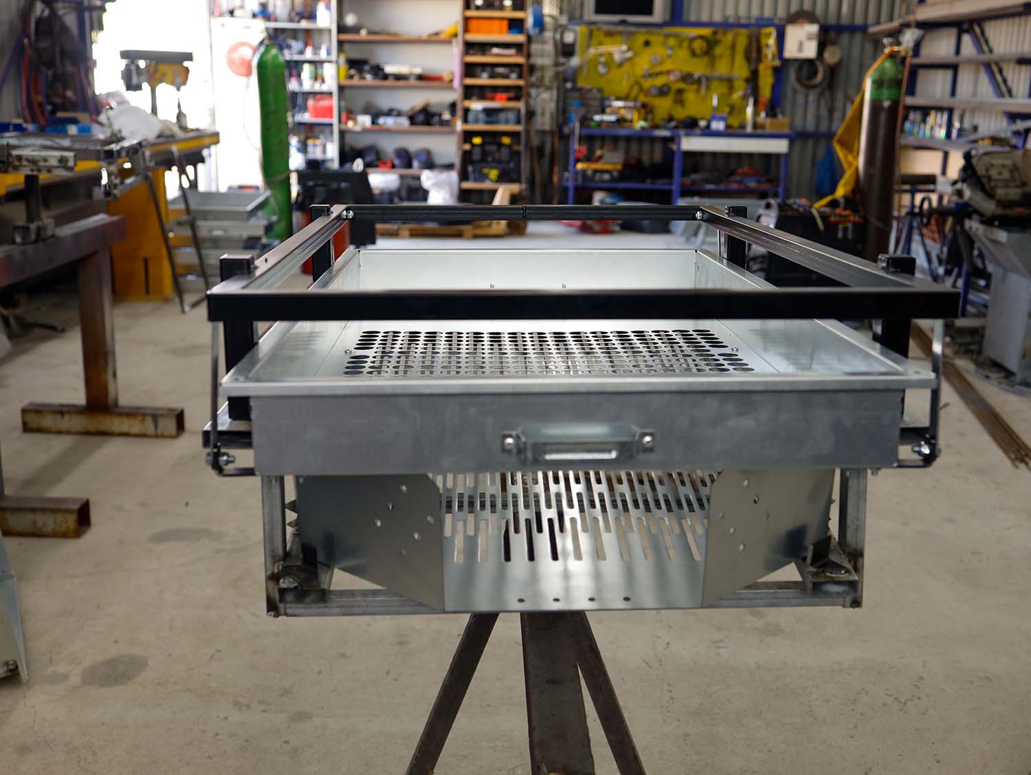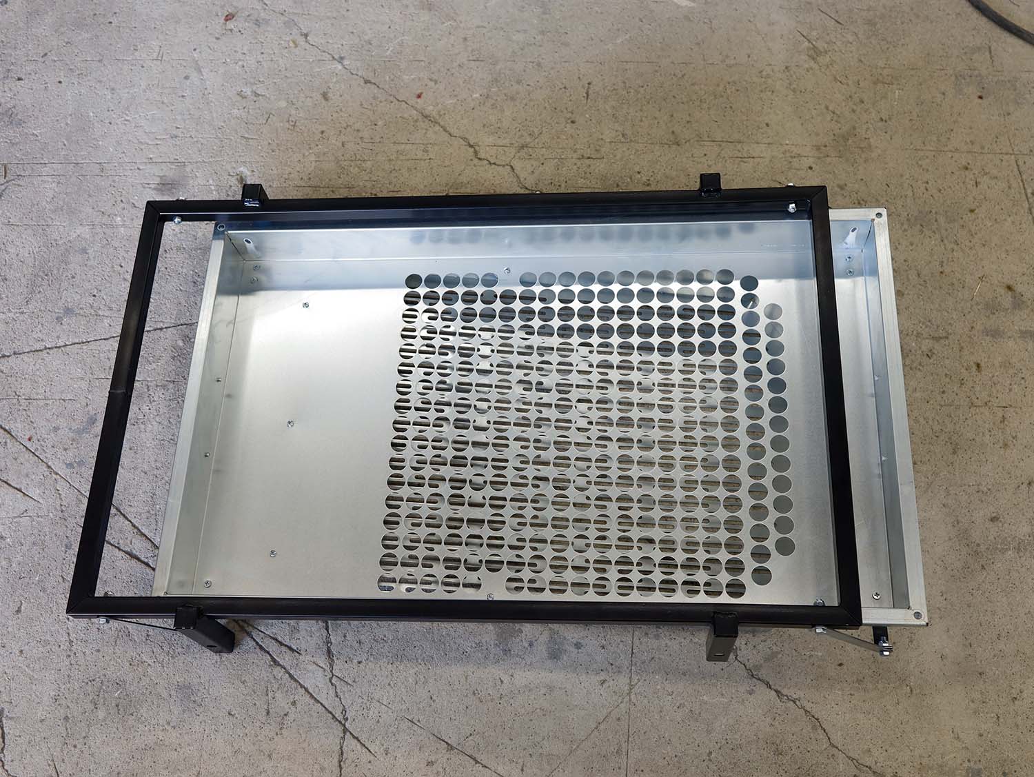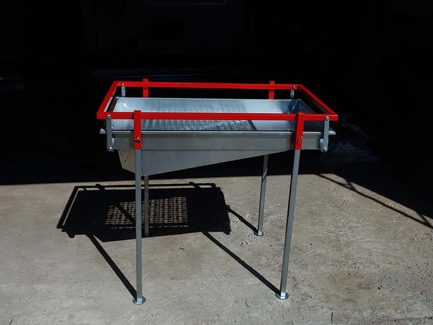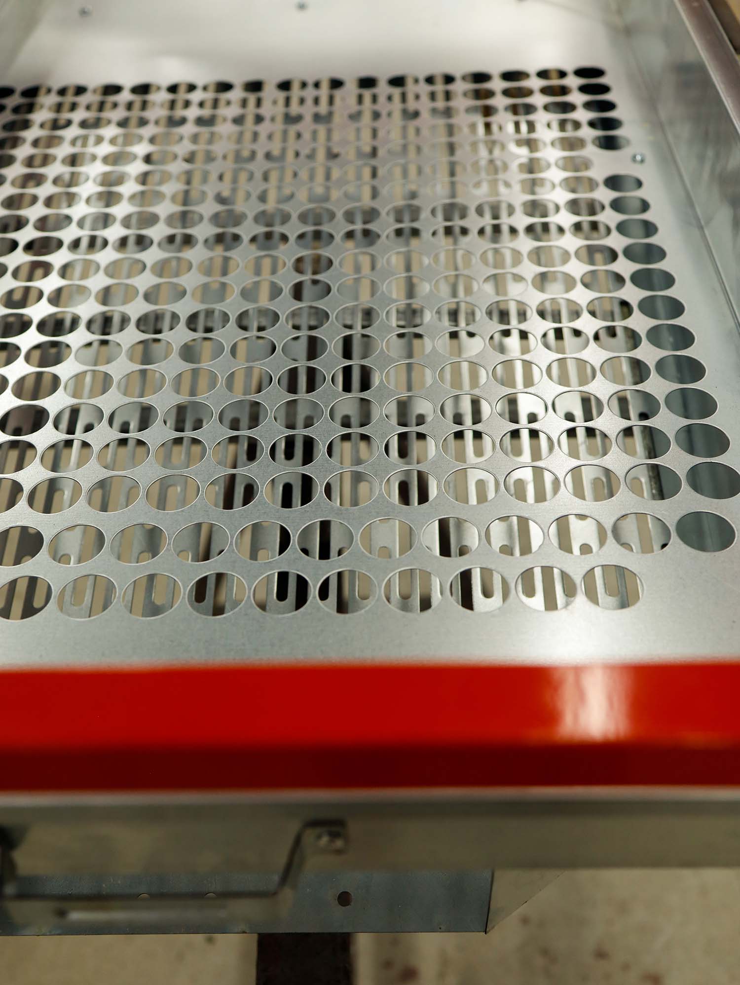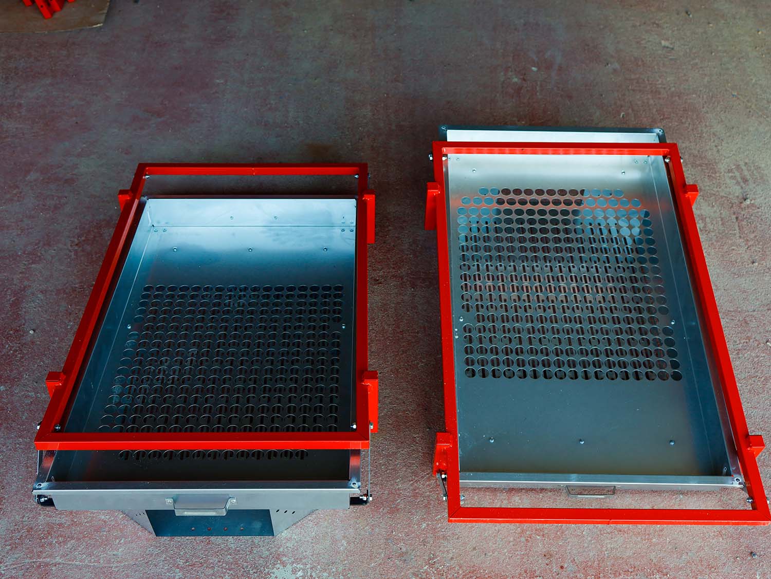 Στιβαρή κατασκευή, γαλβανιζέ σκάφη και λεκάνη συλλογής με παραλληλόγραμμη διάτρηση.